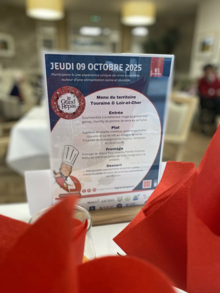 Dans notre EHPAD à Vallières-les-Grandes, nous avons célébré le Grand Repas ce jeudi 9 octobre. En effet, cet événement a réuni 11 familles venues partager un déjeuner convivial avec nos résidents. Par conséquent, cette journée a renforcé les liens entre proches et équipes.